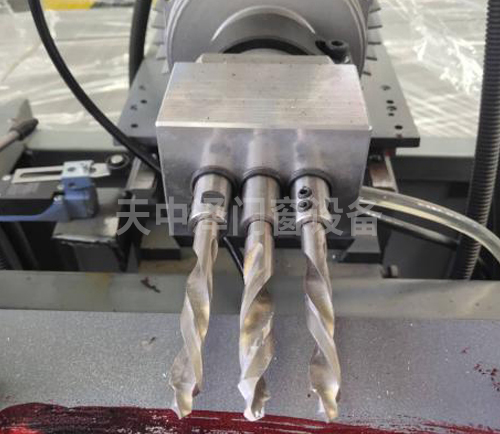 该机床用于加工各式锁孔开槽,有两个机头,上面机头可以根据孔形定制模版。从而在铝材上加工出各式各样的孔,侧面一个机头可以一次性打三个孔一次可钻三层、大大提高断桥窗纱一体料锁的加工。仿形电机2.2kw钻孔电机1.5kw.