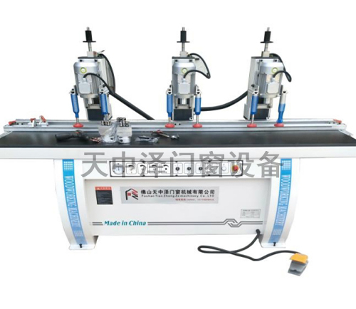 本机床用于铝合金门窗合页、角码、铰链等专业打开也可钻木材,可根据不同合页角码特别订制钻包,三机头可左右移动。也可根据需要订二头或更多头,钻头大小也可以订制。